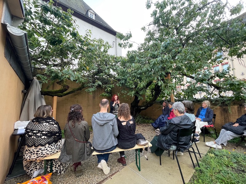 Merci donc au Naturmusée de l'avoir invité (par le biais d'Erzielkonscht) à proposer une séance contée dans le cadre de leur exposition "Sous les pavés, la nature" et sous le magnifique cerisier de leur jardin.