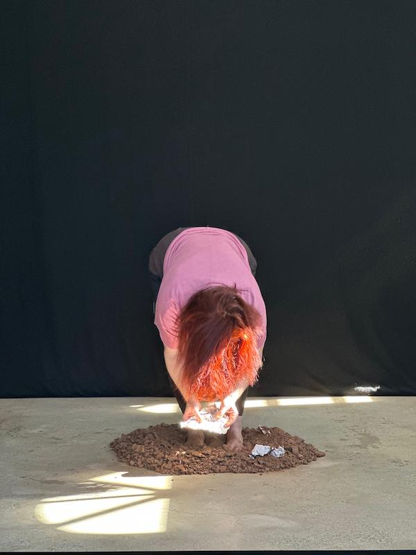 Pour terminer - ou continuer, selon la perspective adoptée -, me voilà plongée, les pieds dans la terre rouge du Minett. Mes pieds gourmands creusent, cherchent et trouvent des turricules de papier remplis de mots à partager lors de ma performance poétique narrative qui a eu lieu au Bridderhaus dans le cadre de l'exposition "Earthbound. Worms, soil, decay".